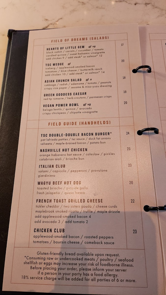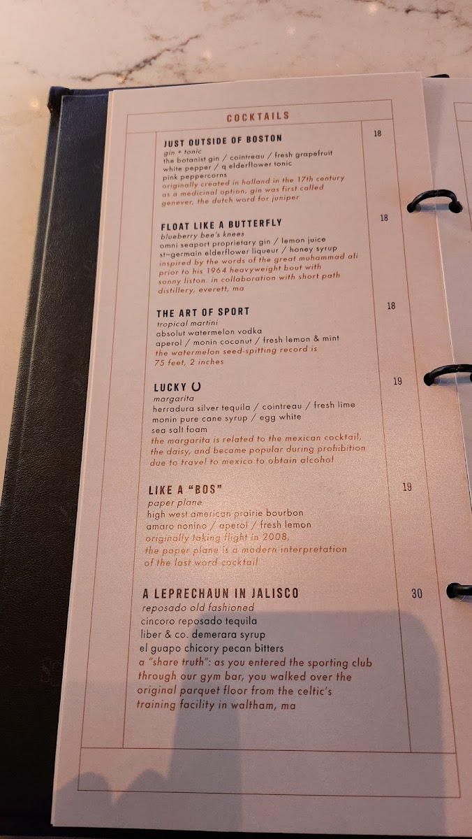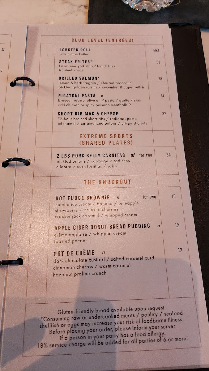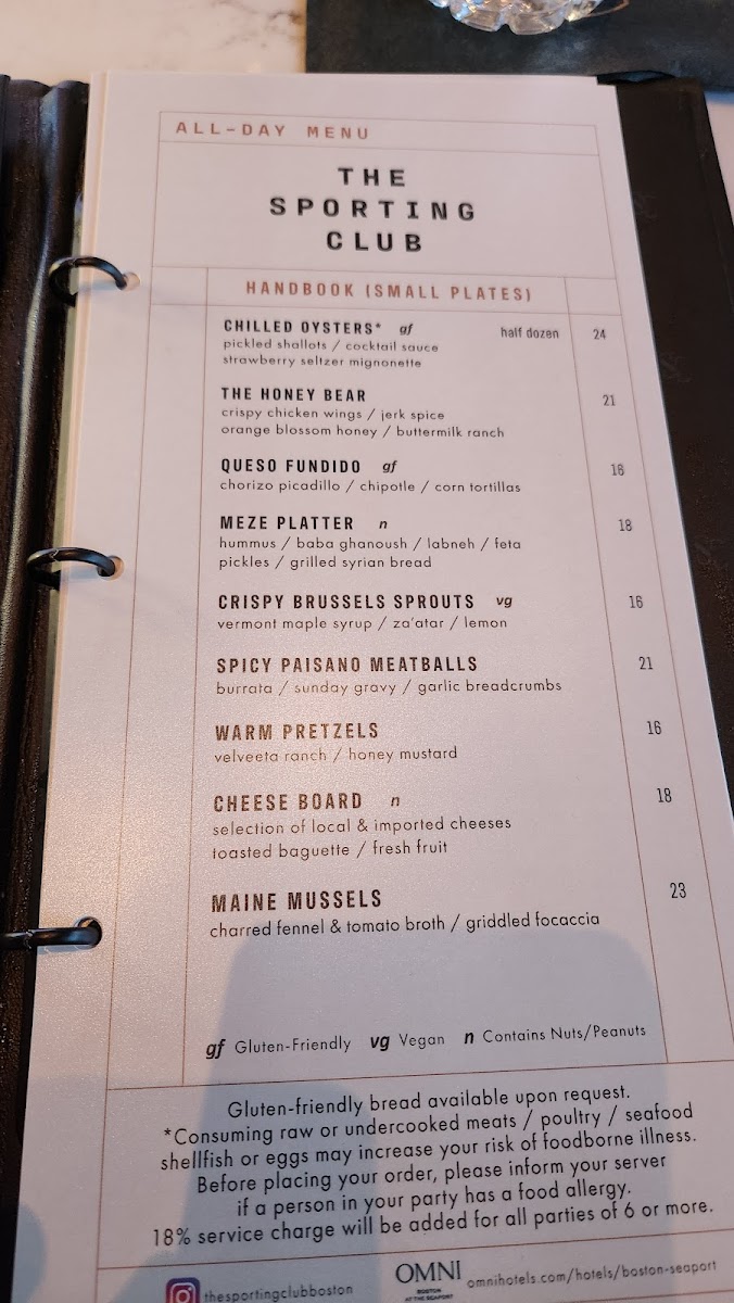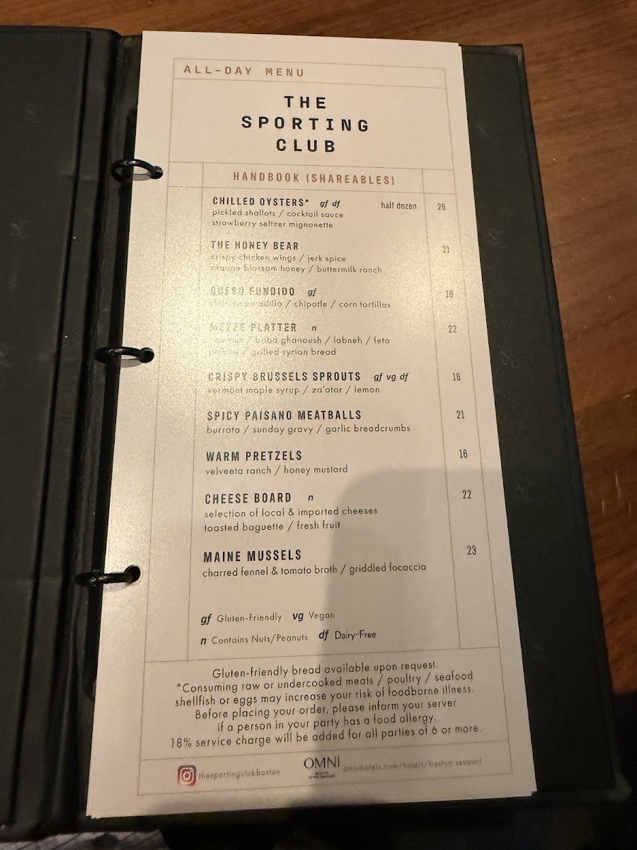 The Sporting Club Menu
